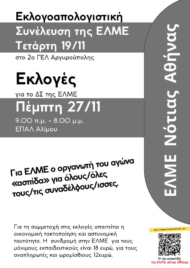 Το ΔΣ της ΕΛΜΕ σας καλεί όλους/ες στην