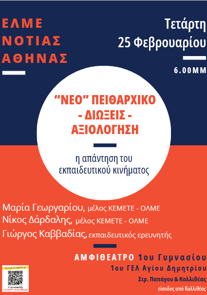 Η ΕΛΜΕ Νότιας Αθήνας διοργανώνει εκδήλωση με τίτλο :